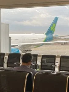 At 4.30am yesterday morning I was sitting in a cold, deserted departure lounge at Dublin airport, huddled in a cheap fleece blanket, waiting for my connection to Manchester (UK). I was overtired and cold, having been in transit for almost 24 hours. This was my fourth consecutive flight since leaving Houston, a route that had forcibly taken me indirectly through Dallas, New York and Ireland in cramped, coach-class seating all the way home. I looked down at the Aer Lingus lime green breakfast box on my knee. “Rise and shine, it’s breakfast time!” exclaimed the cheerful message on the outside of the packaging. I couldn’t have felt less like eating the contents: A dried out blueberry muffin and 4 fluid ounces of warm OJ concentrate served in a tightly-sealed, foil lid cup, guaranteed to spill in my efforts to open it. Airport dining in its least glamorous form…